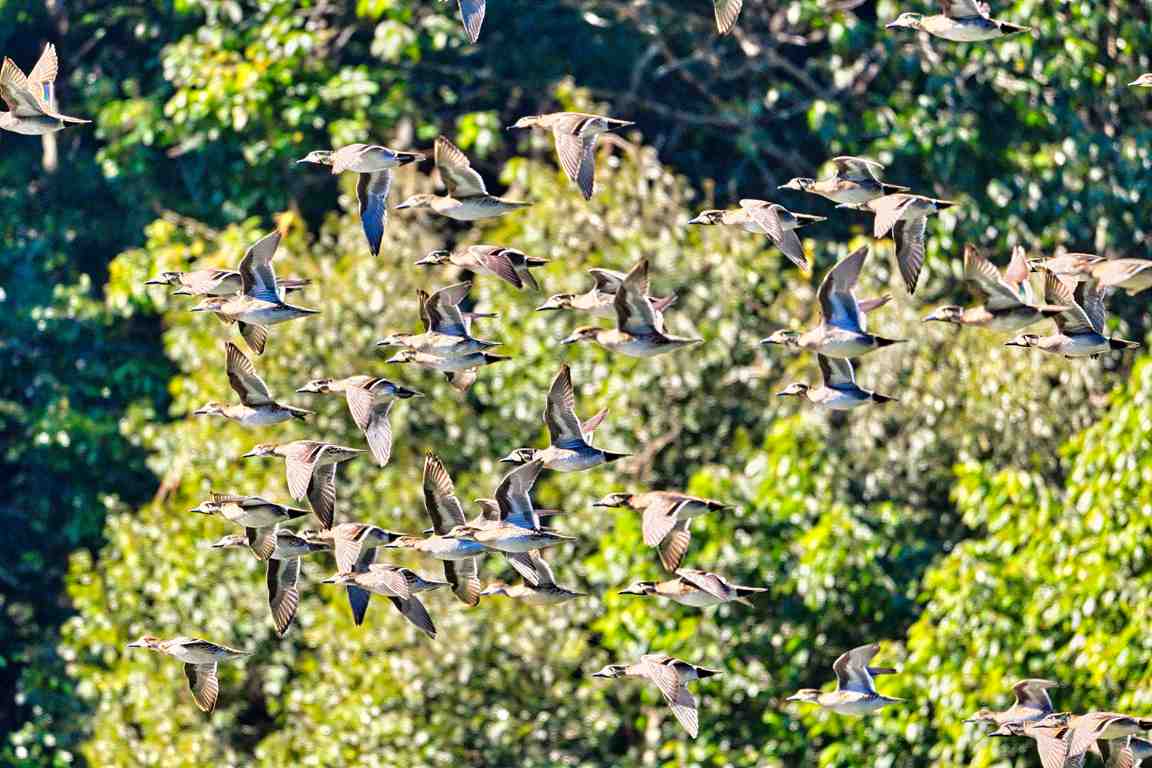 さすがに遠いので近づいてレンズをむけると一斉に飛び立った。時間をおいてから再び、遠くからパチリでした。