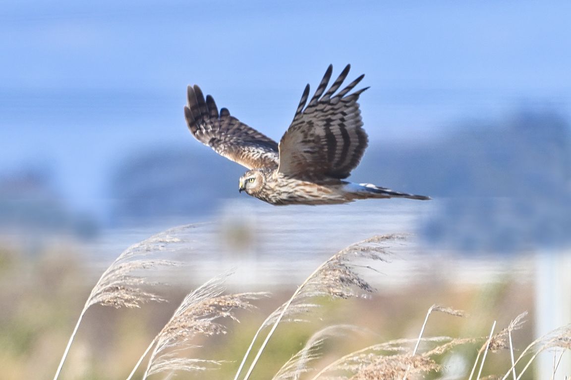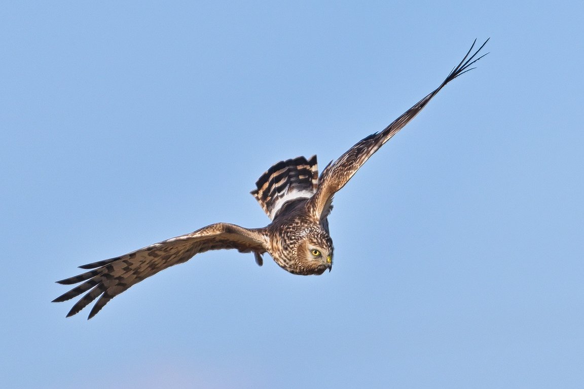 いつもは樹どまりか、空高く腹部を見せて飛んでいるイメージのハイタカ!きょうは背中を見せてくれた(笑)。