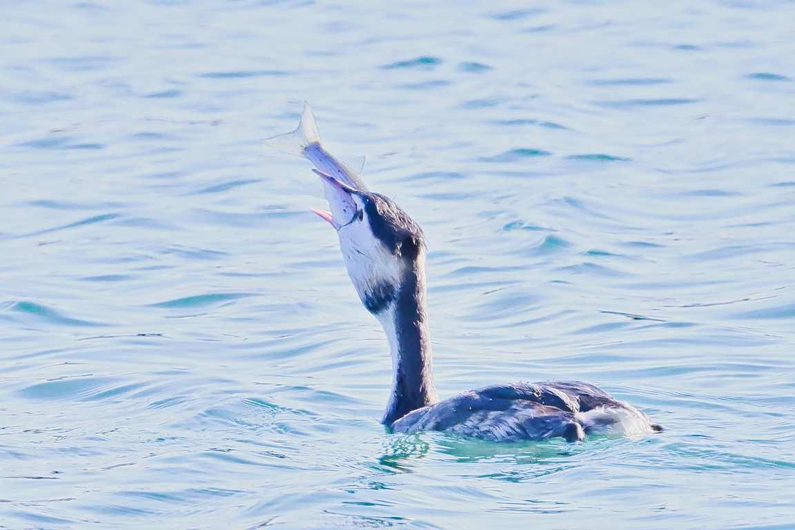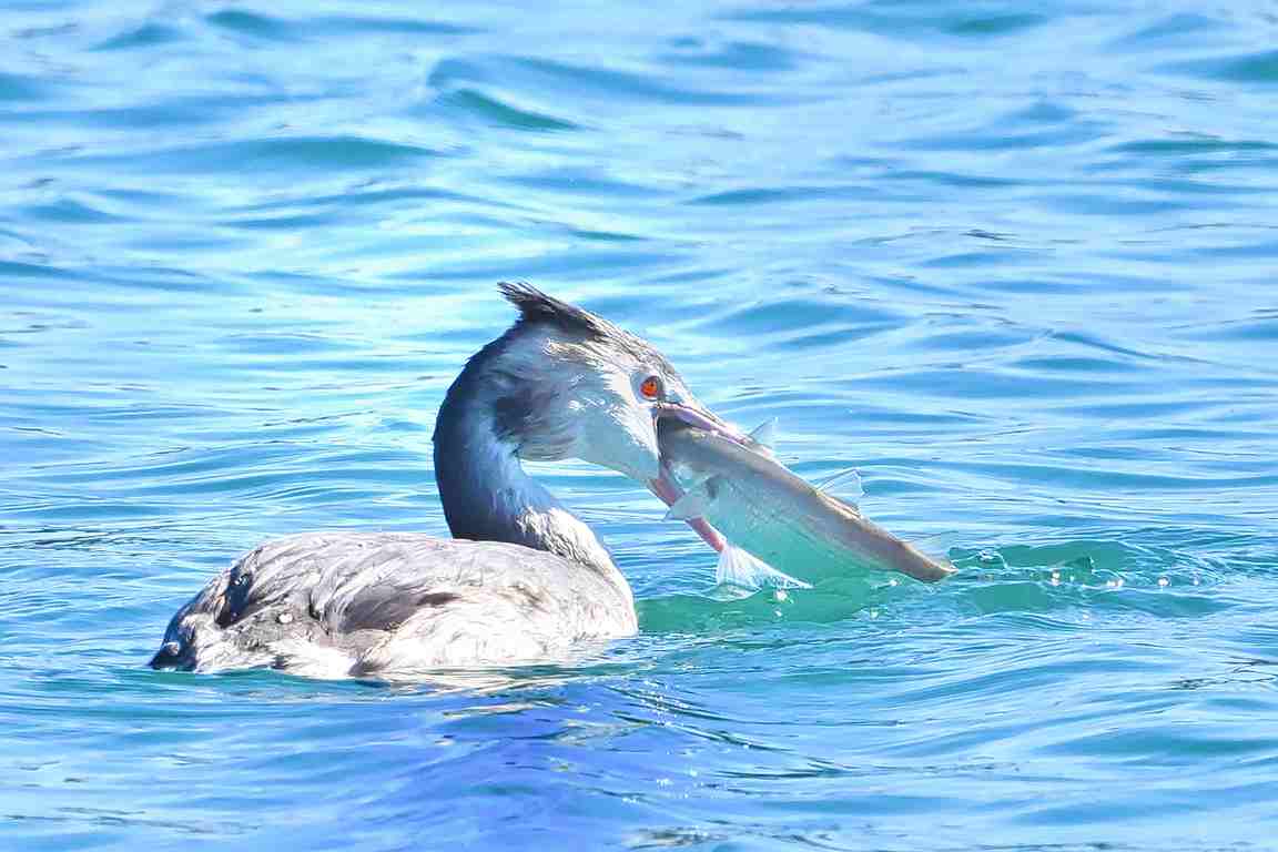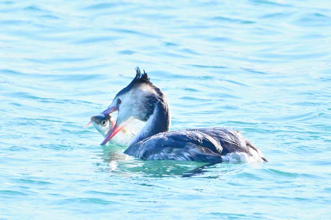 カンムリカイツブリが漁をしているところに出会った(笑)。